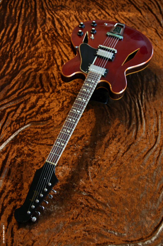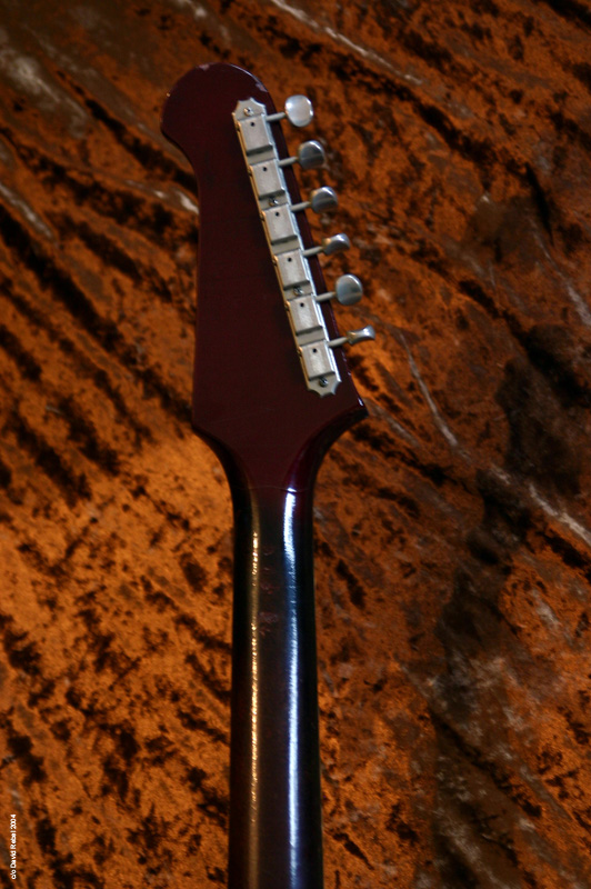 Dies ist im Prinzip eine Gibson ES-335 von 1968 - gleicher Hals, Korpus, Holz, und Tonabnehmer - der Unterschied liegt in den rautenförmigen F-Löchern, den Griffbretteinlagen und der Firebird -Kopfplatte - was ich sehr stylish finde. ;-)